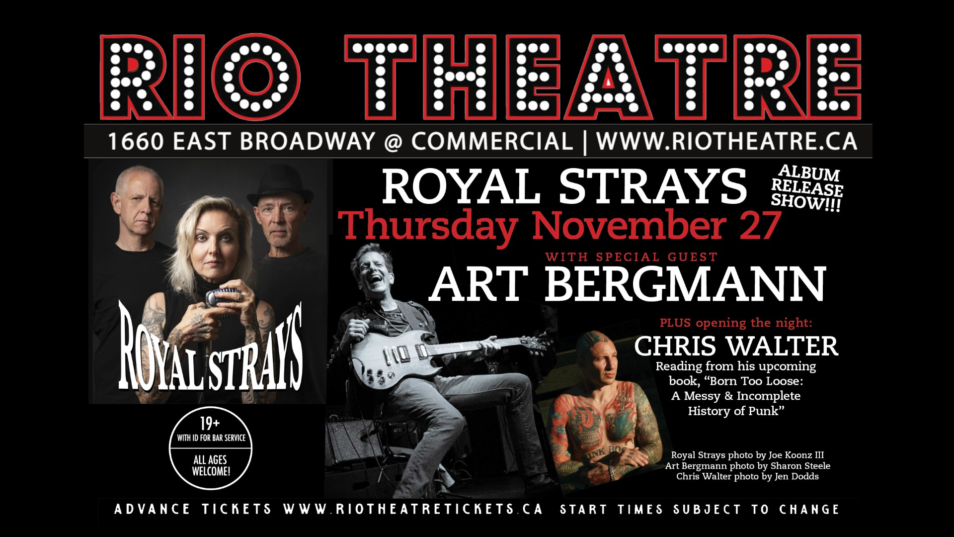 Royal Strays album release show November 27 at The RIO Theatre in Vancouver with very special guest Art Bergmann!